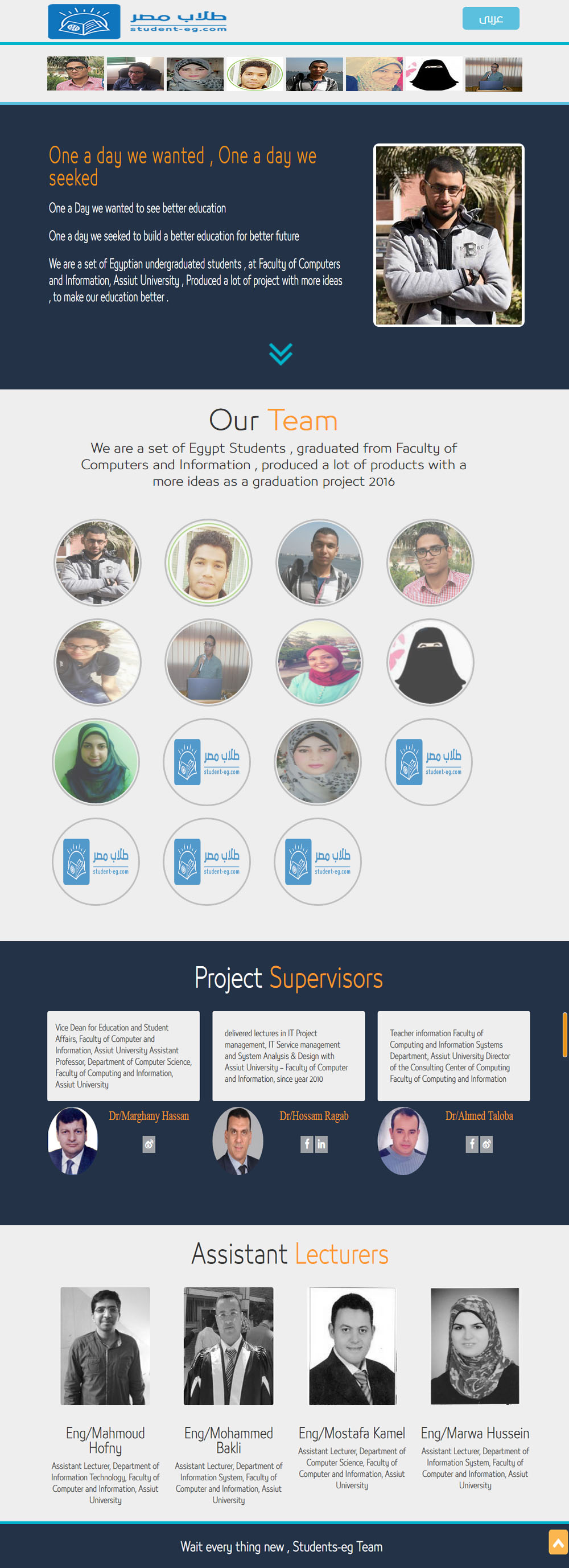 We were a set of Egyptian undergraduated students , at FCI Assiut University , Produced a lot of project with more ideas , to make our education better .