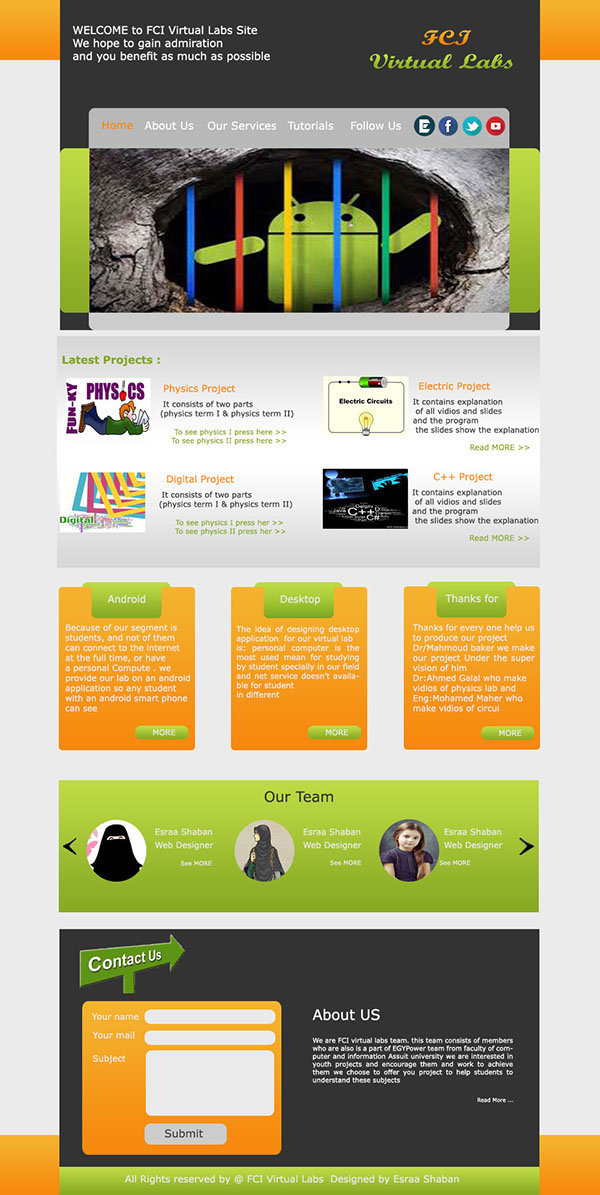 FCI virtual Labs isn't such normal projects, it is a project which provide students interacting with these ELECTRICAL and PHYSIC II lab at FCI Assiut university and getting the best benefits from them, without needing to instructors.