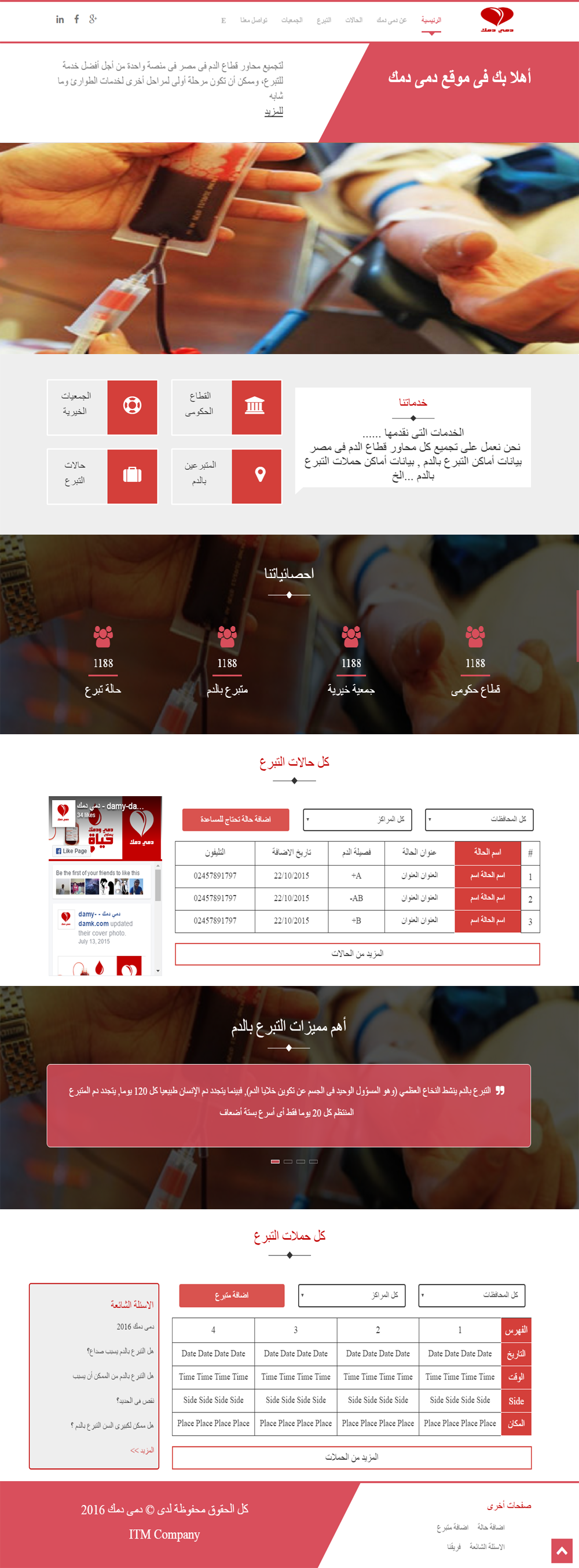 Damy-Damk is Website to collect the blood industry hubs in Egypt in a single platform in order to better serve the donation, and possible other to be the first stages of the emergency services and the like phase